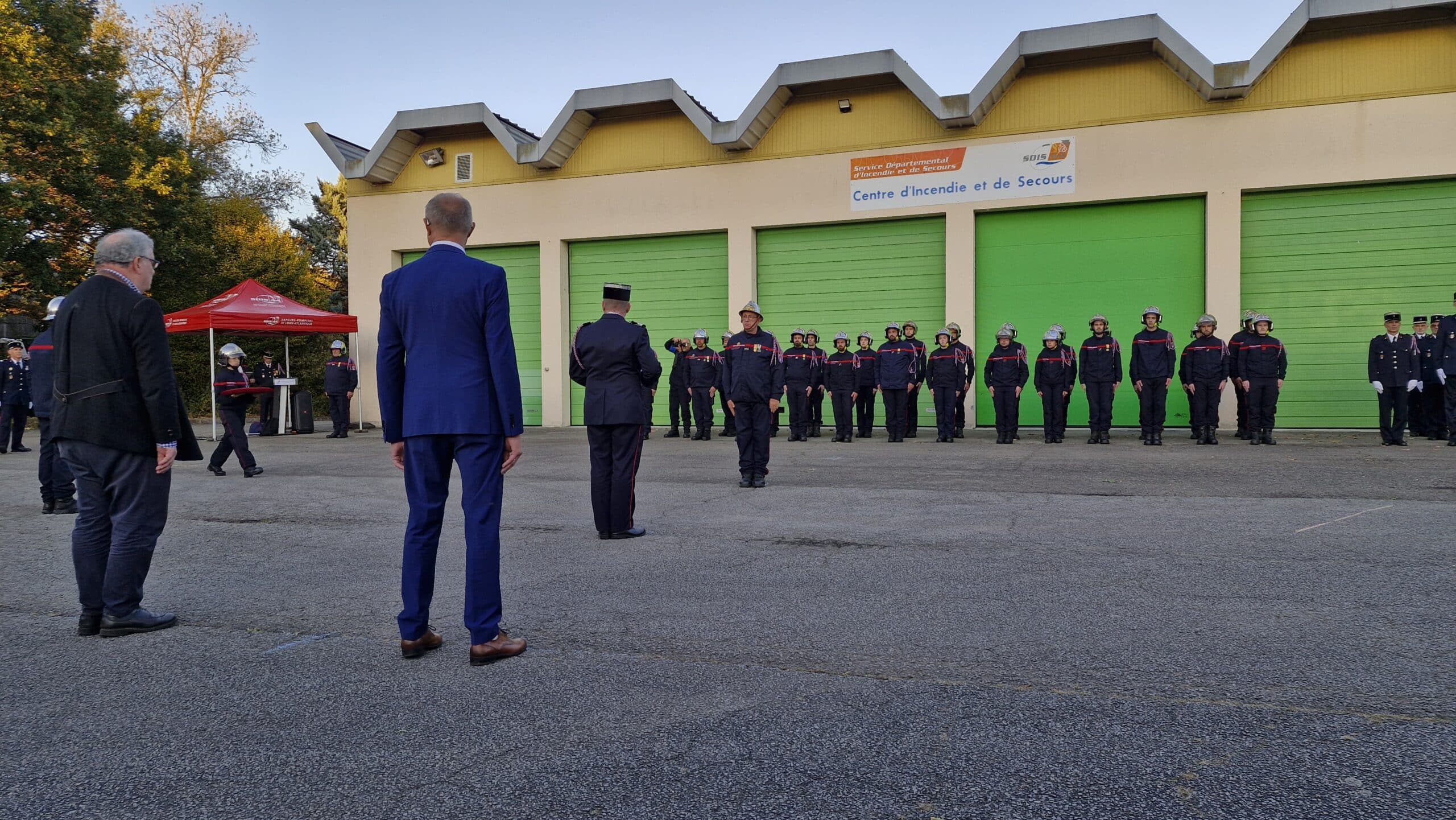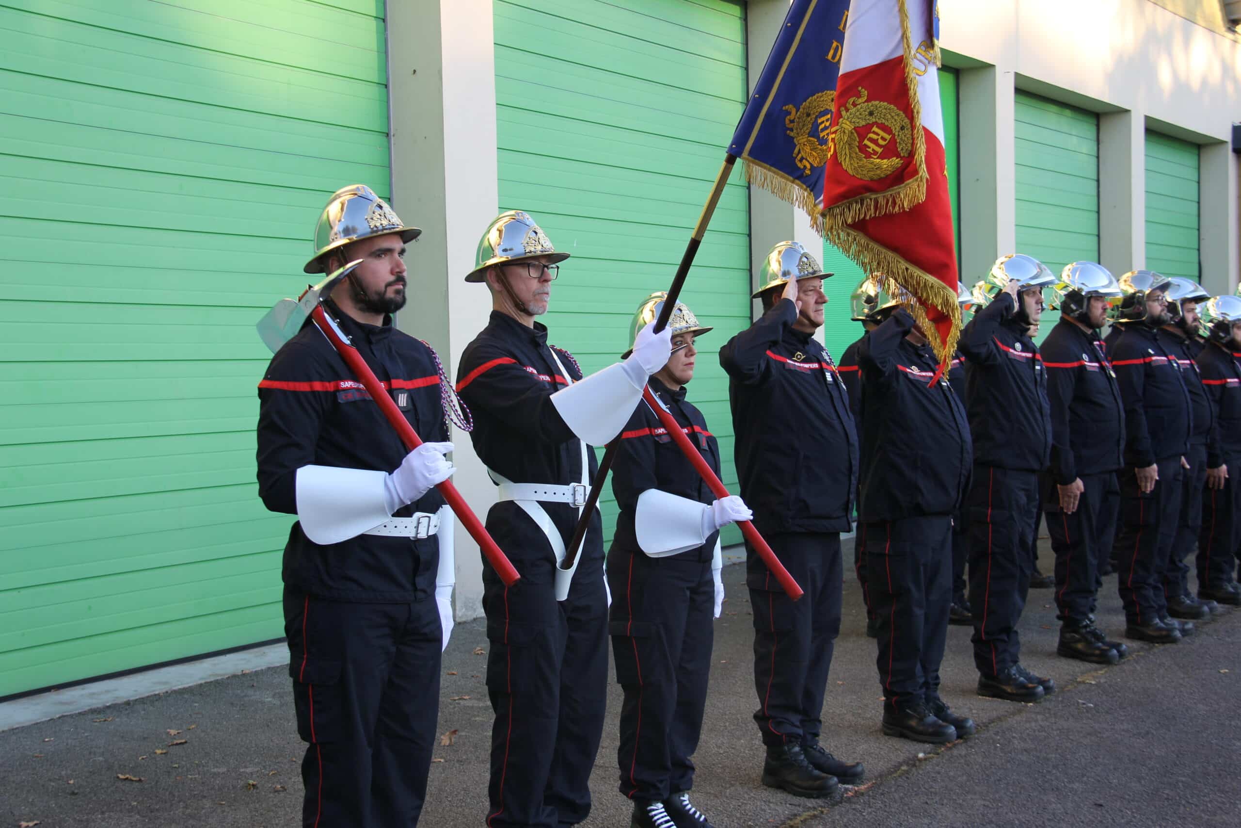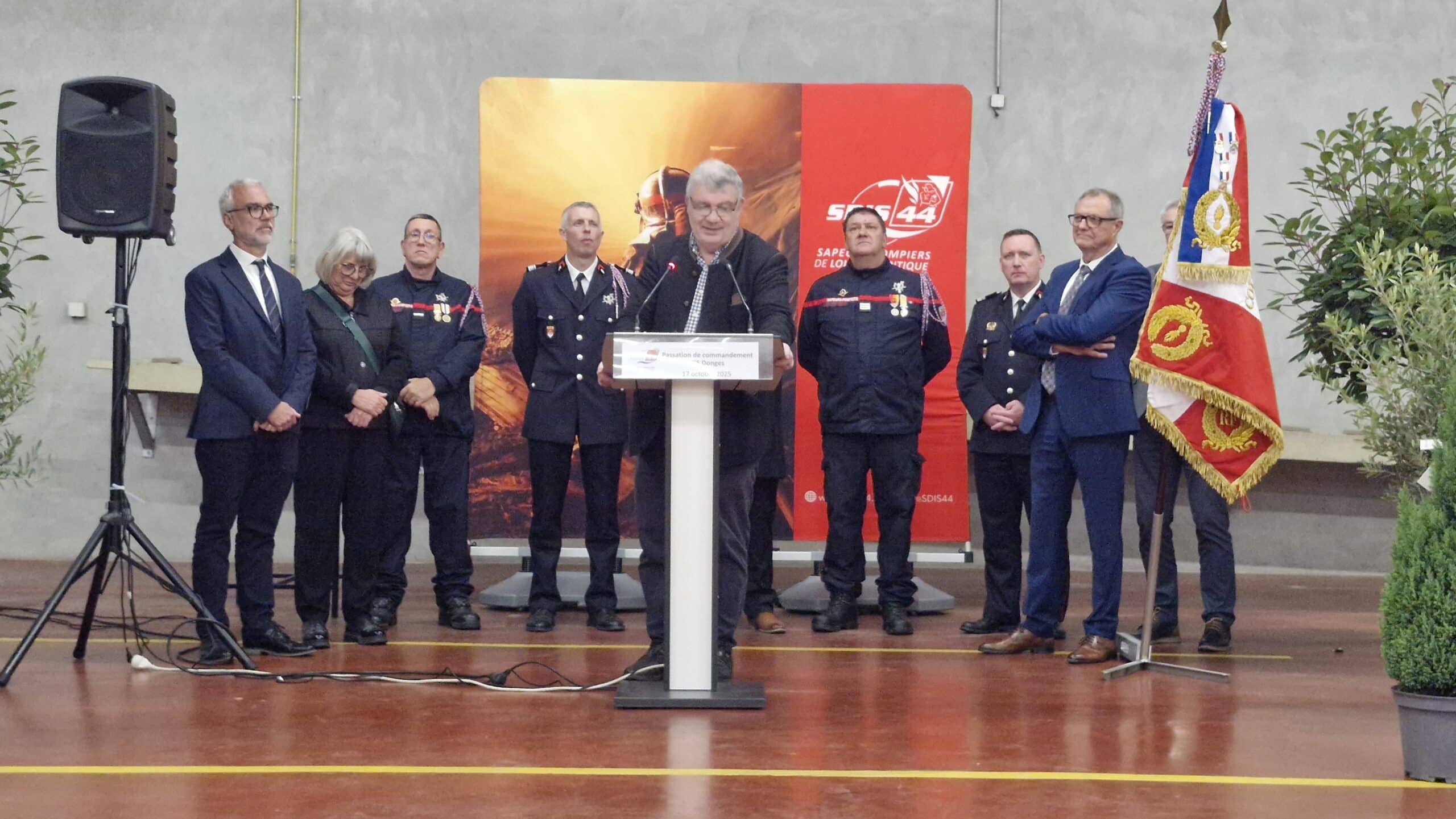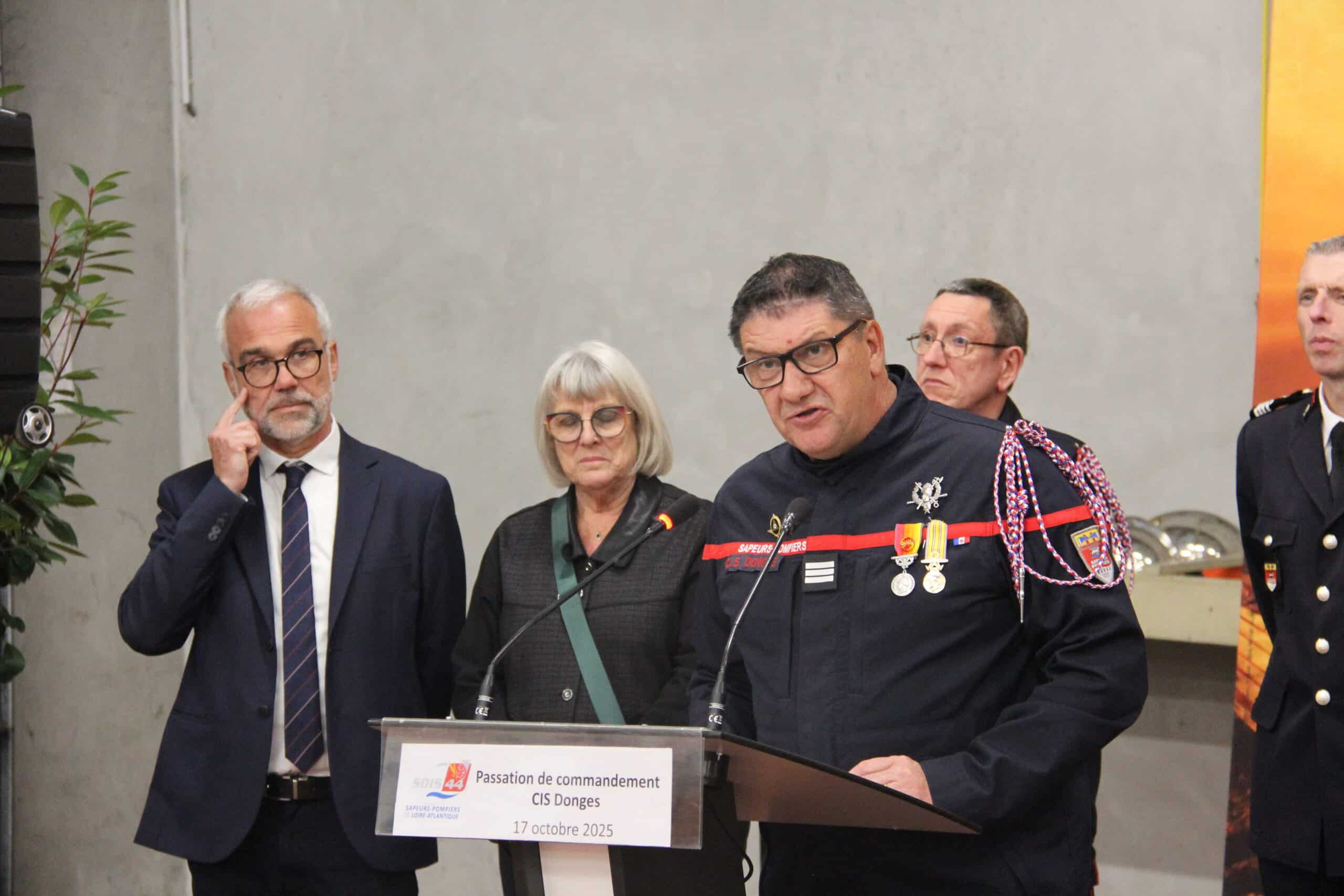 La cérémonie, empreinte de solennité et d'émotion, s'est déroulée en présence notamment du Contrôleur Général Stéphane MORIN, Directeur du Service Départemental d'Incendie et de Secours de Loire-Atlantique (SDIS 44), et de François CHÉNEAU, Maire de Donges.