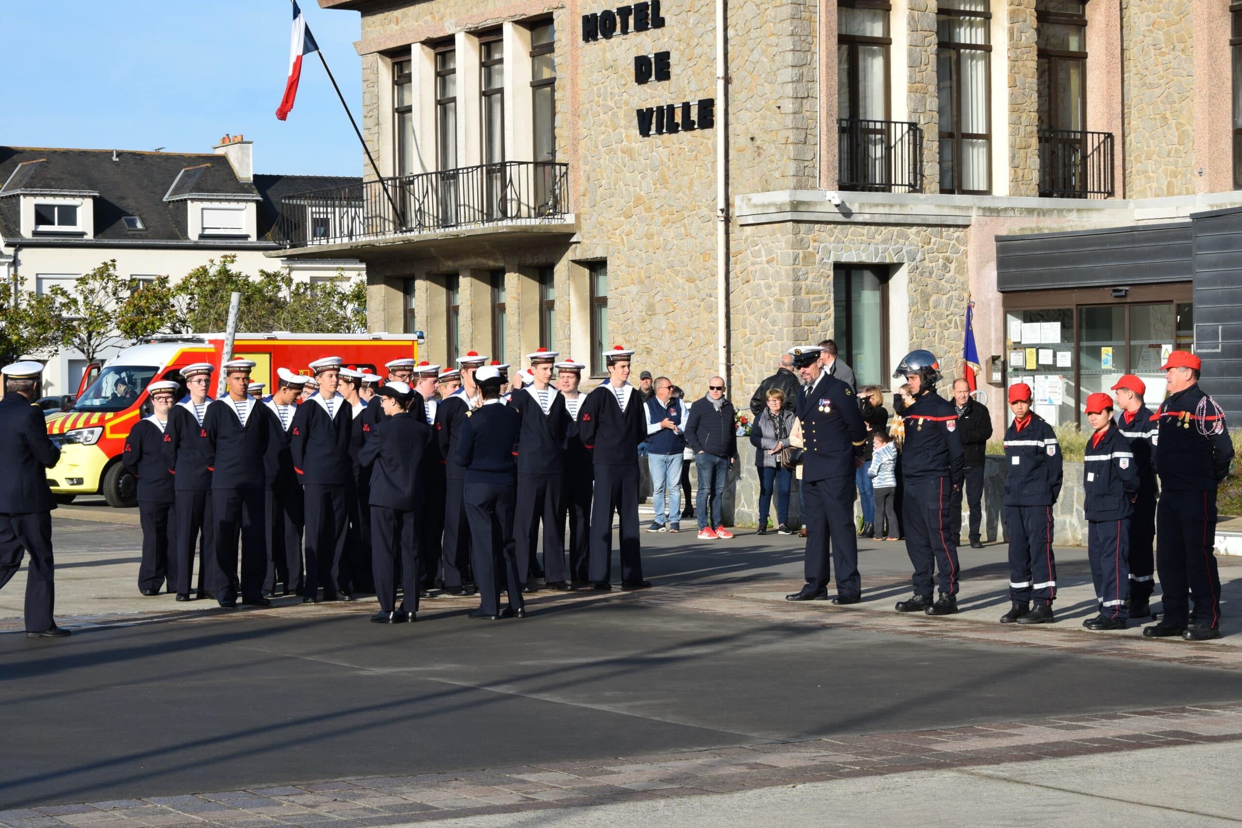 Six encadrants et trente stagiaires de la PMM étaient présents, ainsi que les sapeurs-pompiers de Donges, les jeunes sapeurs-pompiers et des retraités du corps des sapeurs-pompiers. Le Conseil Municipal des Enfants était également réuni pour cette occasion.