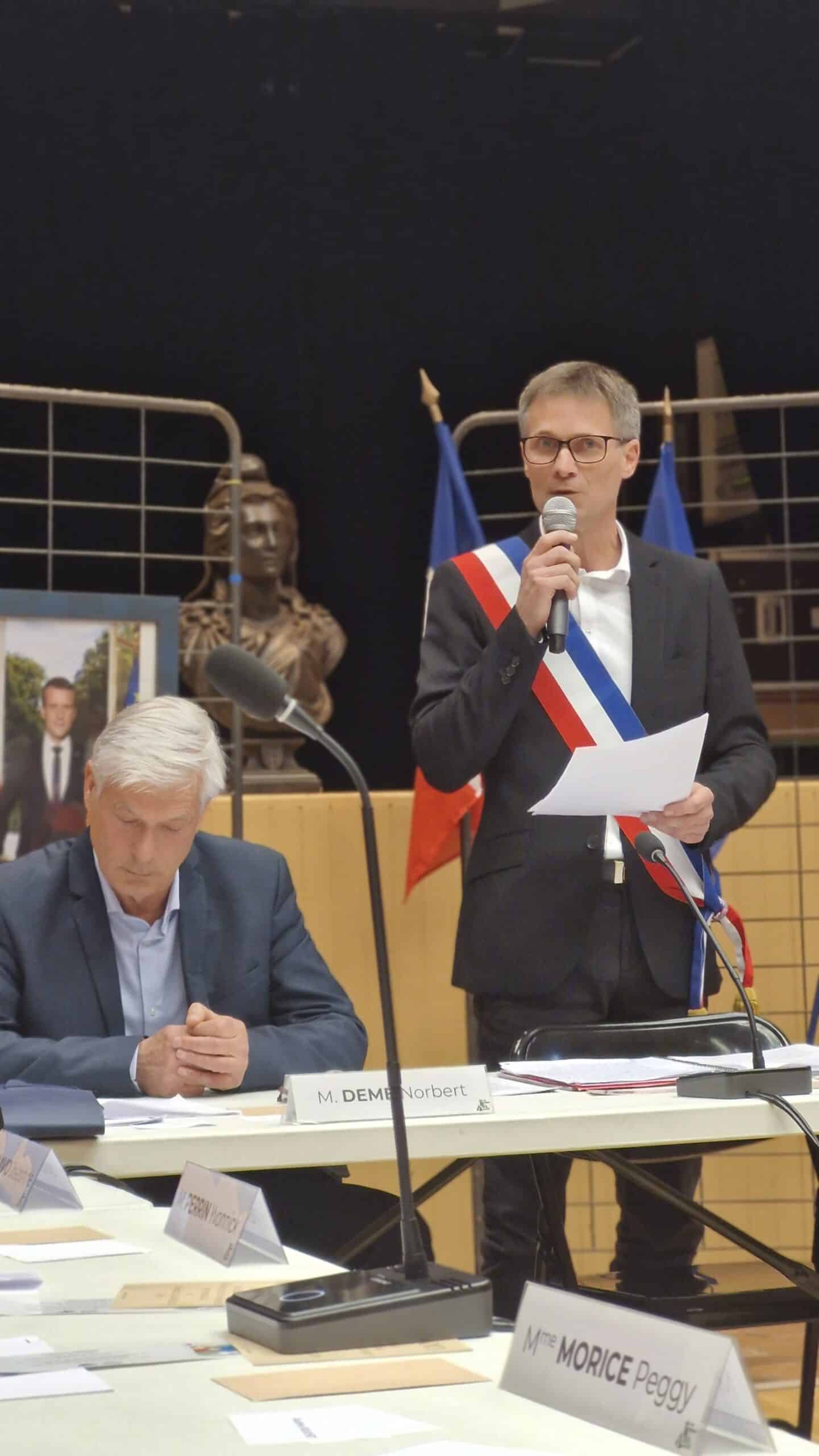 Entouré de ses adjoints et des conseillers municipaux, le nouveau Maire a réaffirmé son engagement au service de tous les Dongeois et sa volonté de porter les projets de notre commune avec dévouement.