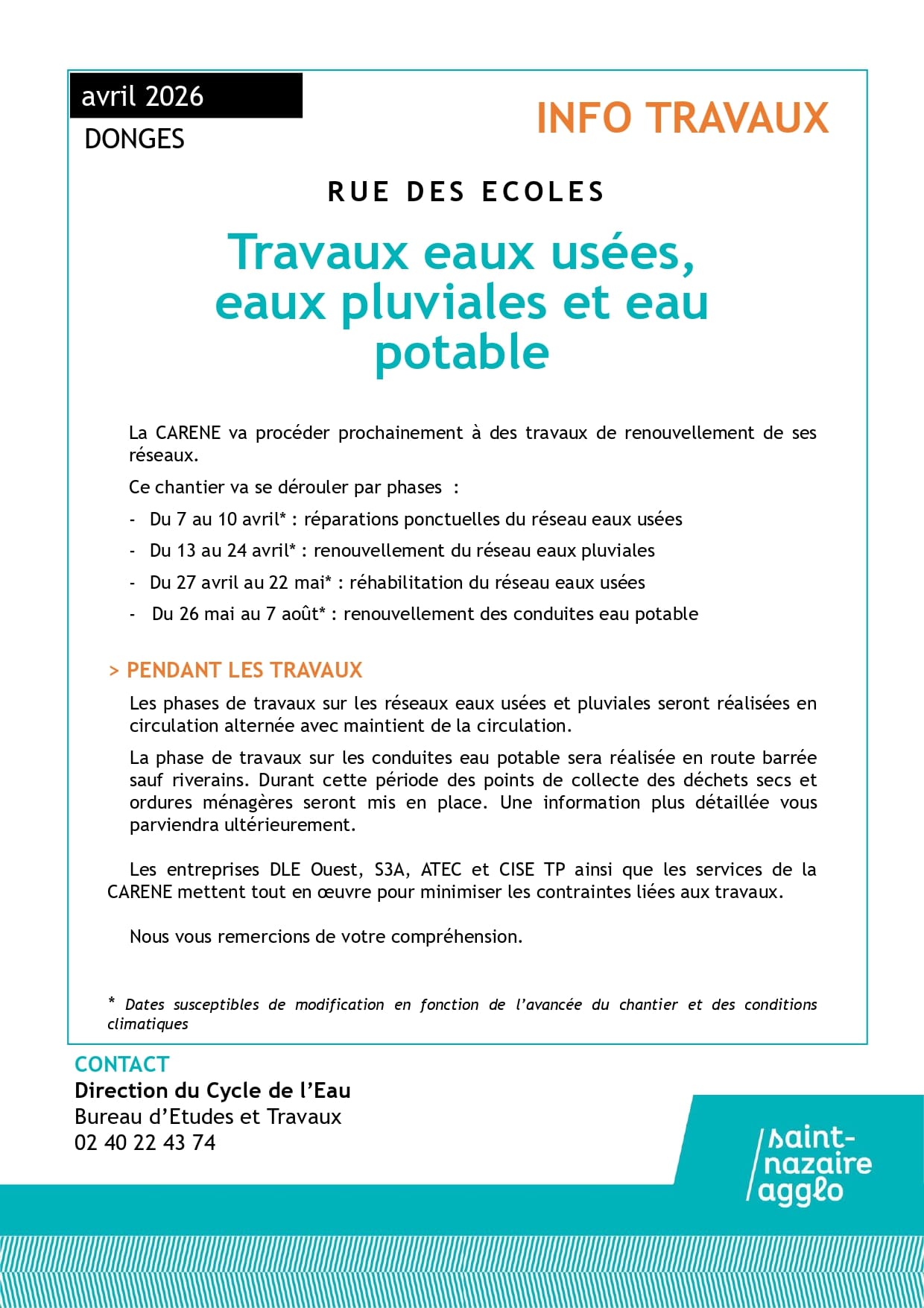 - Du 7 au 10 avril* : réparations ponctuelles du réseau eaux usées